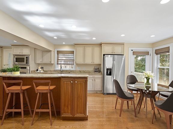 Welcome home! This recently refreshed, beautiful abode in Newton Highlands checks off all of the boxes! The main level is highlighted w/ a convenient layout, perfect for entertaining! Freshly painted & refinished hardwood floors throughout! The open kitchen is ideal for today's home chef, with an immense island, stainless steel appliances, premium granite counters & custom cabinetry. Just off of the kitchen you'll find your family room with custom built- in shelving, the formal dining room w/ wainscoting, & a formal living room with decorative fireplace and a picturesque front window. A main level home office, powder room/mudroom, and garage entry complete this level. Upstairs you will find 4 bedrooms and 2 bathrooms, featuring a primary en suite with newly installed hardwood floors and 3 closets! A bonus space on the lower level can be used as another family room/home gym/ rec. room. Enjoy gatherings on your back deck, surrounded by serene green space!