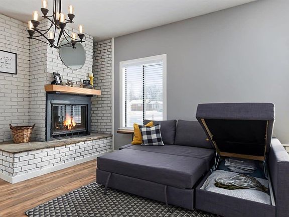 Main Level-Bright and spacious living area featuring comfortable couch with chaise lounge and converts to a queen size sofa sleeper. Flat screen SMART TV, makes for a great night of lounging. Catch up on your favorite Netflix series or watch a movie on Amazon! Open seating area with large windows bring in plenty of light and provides a comfy nook for reading, playing a board game or enjoying a glass of wine.