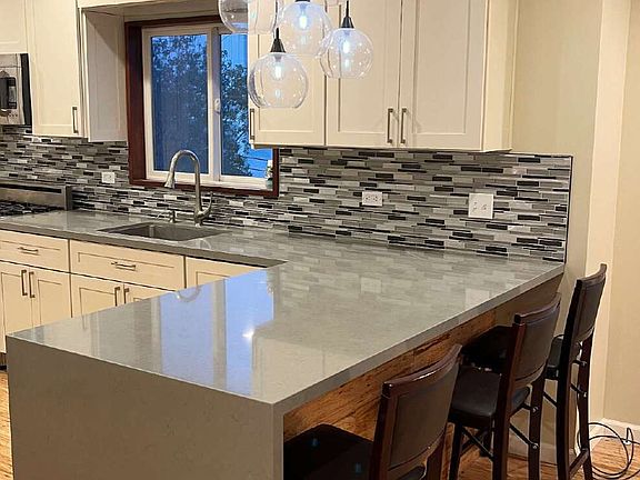 Over the tub showerSpacious bathroomFully remodeled apartmentTwo generous sized bedroomsStainless steel appliancesWall cabinetWasher and dryer