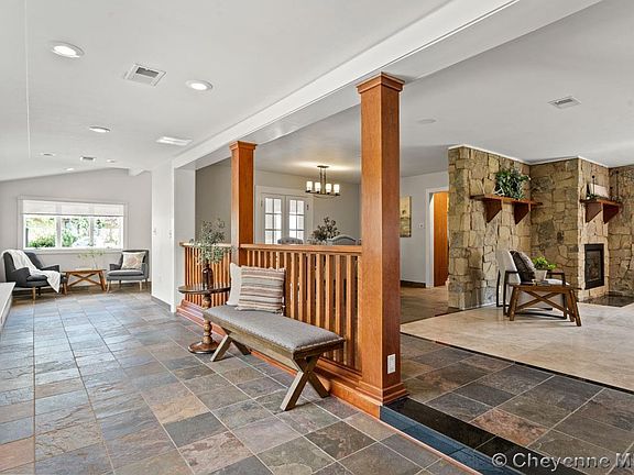 Enjoy one-of-a-kind, picturesque views of Cheyenne's largest city park in this stunning Avenues Home. Located on a 14,027 square foot lot in the heart of The Avenues at the corner of West 8th Avenue and Moore Avenue! All one-level ranch-style floor with 4 bedrooms, 3 bathrooms, and a generous circle driveway. Formal and informal living areas with a relaxing, warm atmosphere. Open living room concept features a beautiful gas fireplace and magnificent views of back yard. Wrap-around sun room along the front and side of the home with automatic blinds on sensors for perfect climate control. Lush park-like views from every room. Storage galore with custom built-ins throughout. Cozy radiant heat plus central air conditioning. Gourmet kitchen features cherry cabinets, skylights, granite countertops, double ovens, a warming drawer, two refrigerators, and walk-in pantry. Breakfast nook offers the perfect spot to overlook the private back yard. Four generous en suite bedrooms with updated bathrooms. Back bedroom guest suite has its own private access, steam shower, jetted bath tub, and home office work area. Mature landscaping on all four-sides of the property. Fully-fenced private back yard with oversized covered patio for outdoor entertaining. Storage shed included. Ample off-street parking. Convenient access to Cheyenne Greenway, brand new pickle ball courts, recreation, Cheyenne Frontier Days and downtown. Truly an Avenues' Gem!