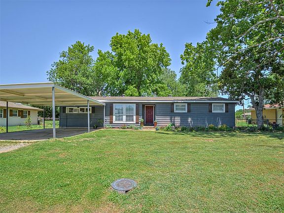 Small town living within minutes to the big city! This charming home is Located in Wayne, Oklahoma which is a short 45 minute drive to Downtown OKC and Tinker Air Force Base! Just a short 30 minute drive to the University of Oklahoma! The home offers 3 bedrooms, 2 full bathrooms, interior laundry and a large kitchen and dining area! There is an optional flex space which could be used as a 4th bedroom, home office or playroom! The living and dining areas flow together very well and offer tons of flexibility. The kitchen offers plenty of counter space, cabinet storage and even has a stand alone island! The primary suite is large and offers extra closet space and a true ensuite bathroom which is totally updated! Each of the secondary bedrooms are generously sized with ceiling fans! There is a second full bath for guests to use when needed! A full renovation has been done on this bathroom as well. Many will appreciate the two car carport for peace of mind during springs in Oklahoma! The back patio is covered and offers charming views of the fenced and oversized yard! The school system is within walking distance from the home to enhance your sense of small town living!