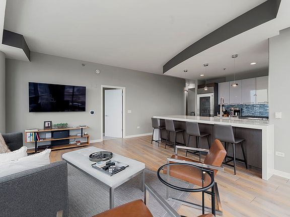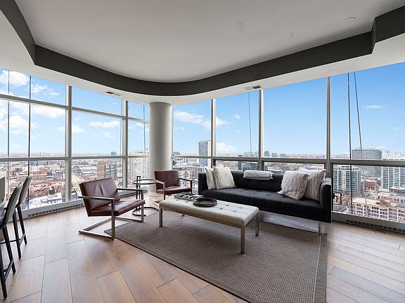 Stunning 2 Bed + Den, 2 Bath Condo with Breathtaking Views in Prime River North Location Welcome to this beautifully renovated, spacious 2-bedroom, 2-bathroom condo with a versatile den that could easily be converted into a 3rd bedroom. Located in the heart of River North, this full-service building offers luxurious amenities and an unbeatable location with direct access to highways and a short walk to the River Walk and some of the city's best restaurants. As you enter, you'll be greeted by wrap-around views from every room, flooding the space with natural light. The extra-long, south-facing balcony offers stunning views of the Merchandise Mart and the Chicago River, providing the perfect space for relaxation or entertaining. A chef's dream, this newly renovated kitchen boasts breathtaking waterfall marble countertops, state of the art Sub-Zero & Wolf appliances, and a sleek wine fridge. The blue backsplash seamlessly blends with the floor-to-ceiling windows that face northwest, allowing you to enjoy sunsets, stunning city views, and even a peek of Lake Michigan, all from the comfort of your living room. Updated flooring throughout the living space enhances the modern feel, creating a cohesive, sophisticated environment. This full-service building offers exceptional amenities, including a state-of-the-art fitness center, outdoor community space, rooftop grilling station, dog run, and a dedicated door staff. Parking is available for an additional 25K .Enjoy the best of city living in River North, with public transportation, shops, and grocery stores just steps away. City living couldn't be easier! Make this exquisite property your new home today!