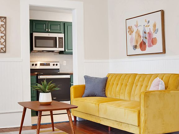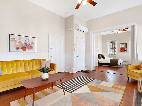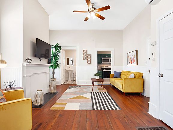 West Park Suites Unit A is a newly renovated executive rental located in Savannah's Victorian District, just a short walk from Forsyth Park. This polished one bedroom, one bathroom apartment combines historic charm with modern updates, featuring hardwood floors, elegant molding, and stylish furnishings throughout. The living room offers a decorative fireplace, smart TV, and comfortable seating, while the kitchen is fully equipped with stainless steel appliances, butcher-block counters, and all the essentials for cooking at home. The bedroom includes a queen bed, large windows, and a desk for remote work, with a full bathroom offering updated fixtures and a tub/shower combination. Enjoy access to a shared washer/dryer, a charming courtyard for morning coffee, and private off-street parking. All utilities are included, with a 30-day minimum stay required. Located near Savannah's best shopping, dining, and historic sites, this executive rental is ideal for extended stays for business or leisure.