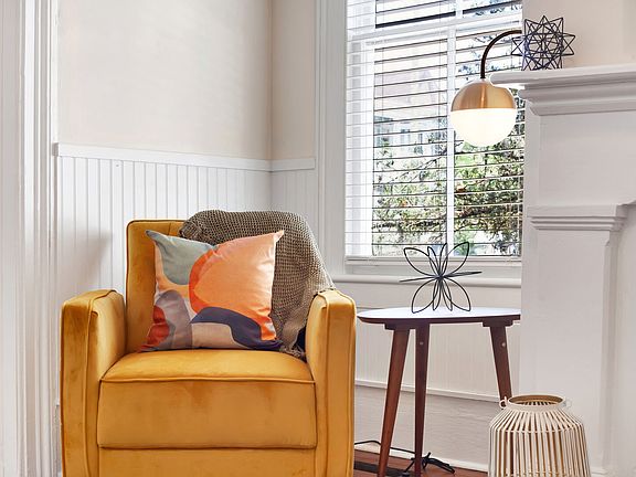 Decorative fireplaceQueen bedHardwood floorsPrivate off-street parkingDesk for remote workLarge windowsStainless steel appliances