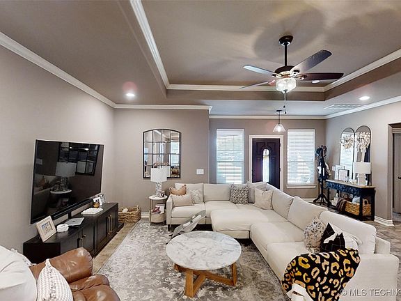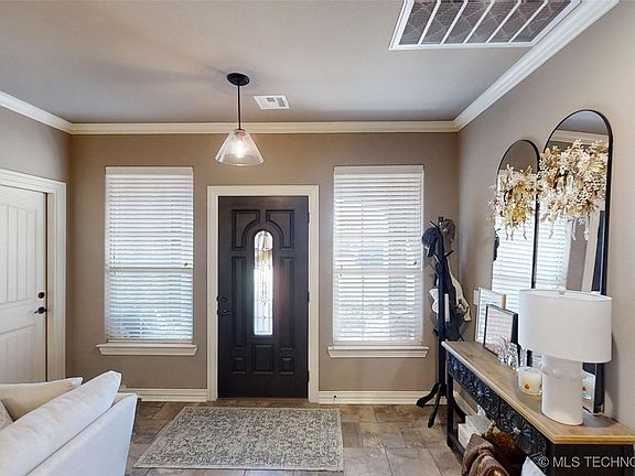MOVE IN READY! BEAUTIFULLY DECORATED WITH GREAT NEUTRAL COLORS. The welcoming open living/dining area has tall ceilings with beautiful crown molding. The kitchen has a convenient breakfast bar area for extra guests. Master bedroom is huge and is separated from the other bedrooms. The master bath has two closets, two sinks, a large soaking tub and a walk in shower. Blinds and curtain rods stay with home. The second and third bedrooms are spacious with wonderful closets. You won't want to miss this one. ONE OF THE BEST!