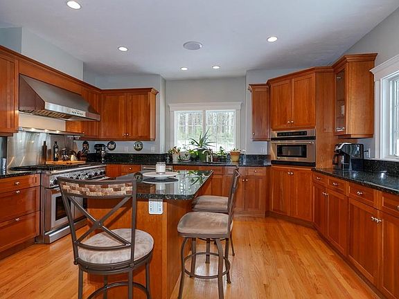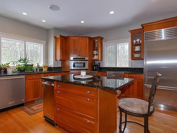 Now a cozy & pampered home in the few years owners have lived here! Nestled on a quiet and private lot of over 4.5 acres, this home's focal point is the chef's kitchen with Thermador range & dble oven, Subzero fridge, wine fridge, walk-in pantry, & large island. Large FR w/ gas FP has sliders leading to deck & patio/firepit overlooking the private bkyard. The beauty of the LR is augmented by the dramatic "octagon" sunroom with cathedral ceilings, crown moldings, wainscoting & tall windows. The DR has a butlers pantry, tray ceiling, lg windows with plantation shutters & wainscoting. The 1st level also features a grand 2-story foyer & office with french doors. The master BR has a walk-in closet/dressing area, sitting room, full bath with steam shower & jet tub. 4 add'l BRs, 2 share a Jack & Jill bath, 3rd BR has ensuite bath. Bonus room in walkout LL along with fireplace providing potential for even more living space. 3-car garage & lg storage shed. Near Nashoba winery, Int'l Golf Crse