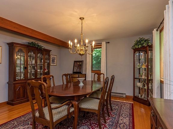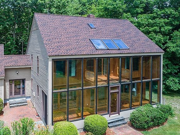 This 3 bedroom, 2 bath colonial is anything but your run of the mill cookie cutter home. Situated on just over 6 wooded acres, this house was designed from the ground up with efficiency in mind. The southern facing 2 story glass enclosed porch incorporates passive solar into offsetting heating costs while also providing a beautiful space to unwind overlooking the private yard. Fireplaced living room and eat-in kitchen feature sliders to the porch. Two large bedrooms upstairs both feature double closets and access to a huge storage space in the eves. First floor bedroom could also be utilized as a great office. Other noteworthy features include first floor laundry, Viessmann Boiler, 2 year old roof, large 2 car garage, radiant heating in 1st floor, stainless appliances, tons of storage, mini split units, mudroom, hardwoods throughout, the list goes on. New 3 bedroom septic and new water filtration system to be installed by sellers.