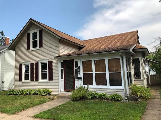 Nice two bedroom home with enclosed front porch, nice size dining room with bump out. Fresh paint in dining room and living room. One bedroom is on the main floor and one bedroom up. The home has a nice size yard with patio area and fenced in yard. One plus car garage off the alley. Main floor laundry.