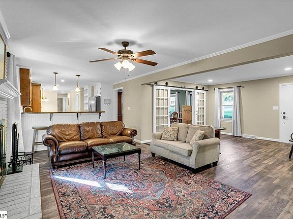 Beautiful 3BR/2BA brick ranch on 1.56 acres in Laurens! Renovated kitchen features wall-mounted oven, countertop electric stove, subway-tile backsplash, and a hidden pantry behind custom shelves. Spacious family room with wood-burning fireplace, plus screened patio overlooking a private, wooded backyard. Large unfinished walk-out basement offers endless storage or expansion potential. Ample parking with a dual carport and detached 2-car garage with electricity. Well-maintained home with thoughtful updates while keeping classic charm. A rare find, peaceful setting yet convenient to town!