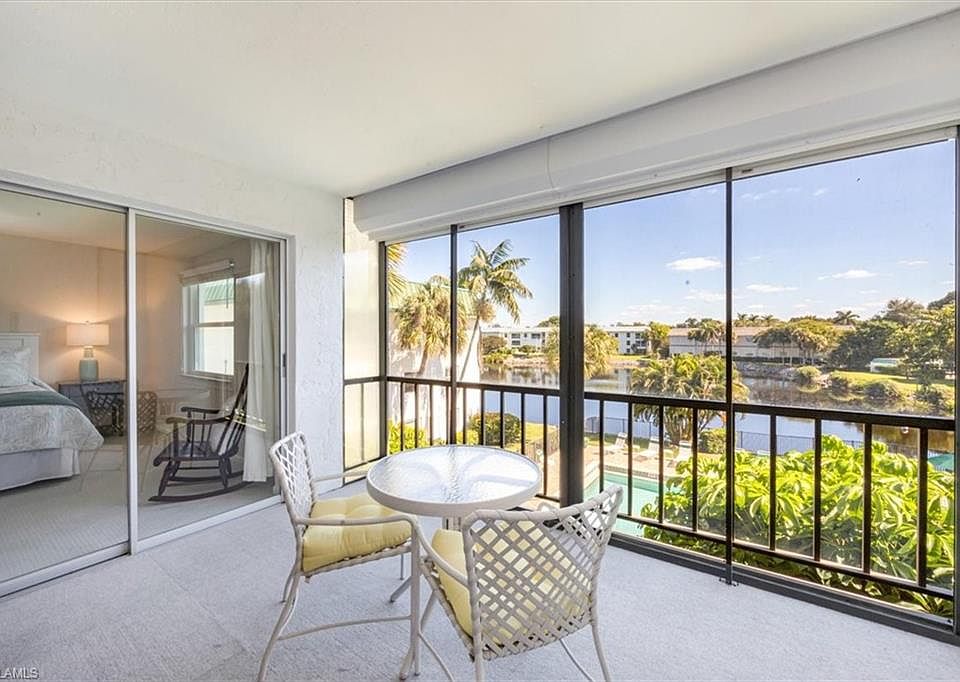 Experience serene lakefront living in this top floor, turnkey-furnished 2 bed, 2 bath residence offering over 1,000 square feet of comfortable, well-designed space. An inviting open floor plan seamlessly connects the updated kitchen, dining room, and living area to the screen-enclosed lanai, creating an ideal setting for everyday living and entertaining. The kitchen features stainless steel appliances, granite countertops, and a convenient pass-through to the dining room. Step out to the lanai and enjoy peaceful lake views that elevate the home’s relaxed ambience. The primary suite includes a walk-in closet and a beautifully renovated bathroom, while the spacious guest bedroom offers generous closet space and easy access to the full guest bath. Chateau Suzanne is a low-density, well-managed community known for its pristine grounds and tranquil lakefront pool. Residents also have the option to join the prestigious Moorings Property Owners Association, which provides private beach access with gated entry, tiki huts, picnic areas, restrooms, and secure bike and vehicle parking. All of this is located just minutes from Naples’ premier destinations, including Fifth Avenue, Historic Third Street South, Waterside Shops, and Mercato. This is an exceptional opportunity to enjoy effortless coastal living in one of Naples’ most desirable locations.