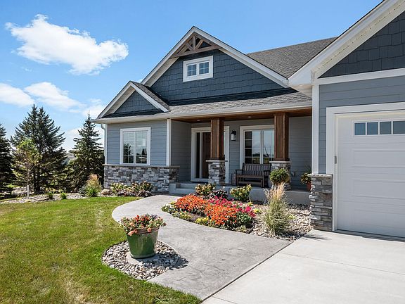 A stunning like-new walkout rambler situated on a sprawling 6.5-acre private treed lot with beautiful lake views offers a perfect blend of modern luxury & serene rural living. If you are in search of a new construction home without the wait, do not miss the opportunity to own this exquisite home. The home was built with all the extras! Tons of windows throughout the home capture breathtaking views of the surrounding landscape, lovely homes & Circle Lake. The sunlit main level features 9-foot ceilings that create a sense of openness throughout. The inviting open concept includes a Living Room with a striking 12-foot tray ceiling, a cozy gas stone fireplace with custom built-ins, a Dining Area that seamlessly flows to the maintenance-free 14x22 deck, offering lovely backyard & lake views. The gourmet Kitchen is a chef’s dream, boasting an abundance of custom white cabinetry with soft-close doors/ drawers, six burner gas stove, stunning granite countertops, a stylish subway tile backsplash, under cabinet lighting, stainless steel appliances, breakfast bar seating, & a bonus coffee bar area. The luxurious primary suite is a highlight, featuring an ensuite bath with a standalone soaking tub, double sinks set in a tall vanity, a walk-in tiled shower with a bench, & a spacious walk-in closet with custom organizers. Completing the main level is the spacious Bedroom 2, a versatile Office with built in bookcase, a ¾ bath & for added convenience, the Laundry Room with sink is in the mudroom just inside from the 3-stall heated oversized garage offering a floor drain & convenient side door access to the yard. Venture downstairs to the finished walkout Basement offering 2 additional Bedrooms, full Bath, & generous Family Room with built in shelving complete with a decorative paneled wall featured TV wall, a stunning Wet Bar, under stair storage & storage space with an infra-red sauna & cold plunge mini pool, wonderful for everyday entertaining or cozy movie nights. Walkout to the 16x56 stamped concrete patio or follow the walkway to the spacious firepit. This home offers remarkable outdoor living! Seller has added over $120,000 in improvements in the last year, including full yard landscaping, window treatments, gutters, water softener, whole house water filtration system, custom closet organizers, built in shelving and bookcases, Stamped Concrete front sidewalk, back 16x56 patio, back sidewalk to firepit & firepit area. This is truly a home you will have to experience for yourself!