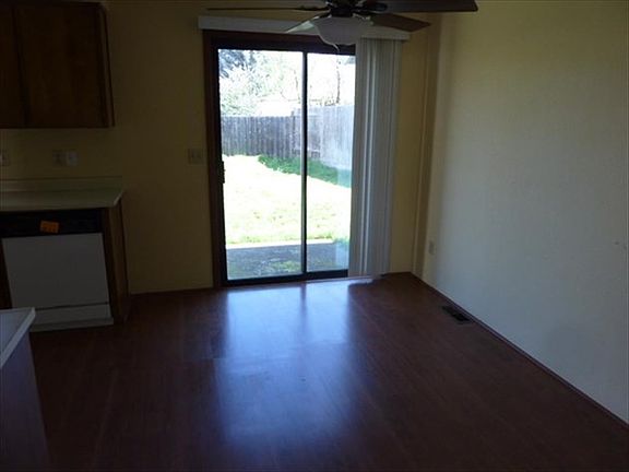 Solid home in a quiet neighborhood. This three bedroom two bath home offers a split floor plan, laminate flooring in the dining and kitchen area, plenty of natural light, slider out to the patio, attached two car garage and more.