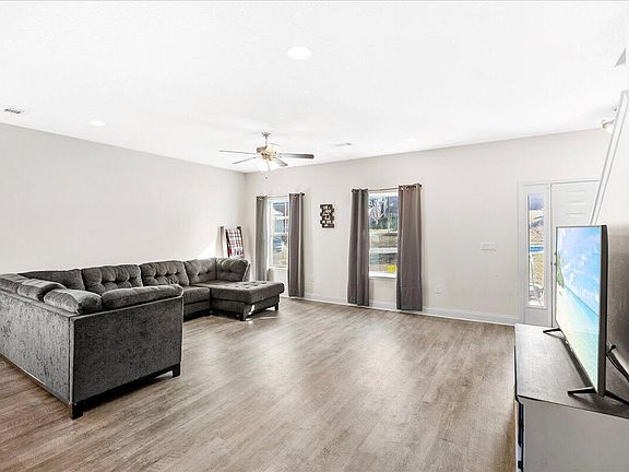 Discover The Aspen Cove floor plan, a beautifully designed 4 BR, 2.5 BA home offering comfort, style, and an easy-flow layout. Wood-look vinyl plank flooring enhances the main living areas, leading you into a bright, open kitchen with granite countertops, a spacious island, and stainless steel appliances. The first-floor primary suite feels like a true retreat with its zero-entry all-tile walk-in shower, double vanities, tile flooring, and a massive walk-in closet. Upstairs, three additional and spacious bedrooms offer room for family, guests, work, or hobbies. Relax on the covered rear lanai, enjoy low-maintenance yard care with the full irrigation system, and appreciate the confidence of 8 years remaining on the 10-year structural Maverick warranty.