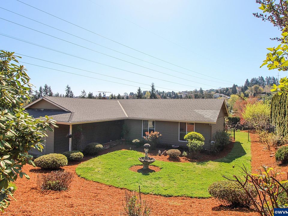 One story with room for RV in west Salem's Chatnicka Heights! Lots of updates including Hardwood floors, cherry cabinets, stainless steel appliances, granite countertops, vinyl windows. Vaulted living room, three bedrooms plus office/den, covered/enclosed porch, covered patio, large landscaped lot with fruit trees and large garden shed. Huge RV pad area aprox 18 X 85 with 18X20 covered carport.