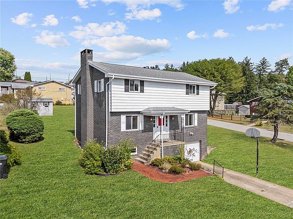 Welcome to this spacious 4-bedroom brick colonial, perfectly situated on a large corner lot in North Huntingdon/Norwin School District. The entrance features a large guest closet before turning into a bright and inviting large living room with gleaming hardwood floors. The formal dining room awaits your family for gatherings. Also on the first floor is a pantry for extra storage and an eat-in-kitchen. The finished game room includes a log-burning fireplace for a warm and cozy spot for your family. Hardwood floors continue upstairs, where you’ll find four generously sized bedrooms, each with double closets, ensuring plenty of storage space for the whole family. Outdoors, enjoy the covered back porch overlooking the expansive yard, with shed, and plenty of room for a pool – making it a perfect retreat for summer entertaining. Relax knowing that a home warranty is included in this classic Colonial. Make this North Huntingdon house your home!