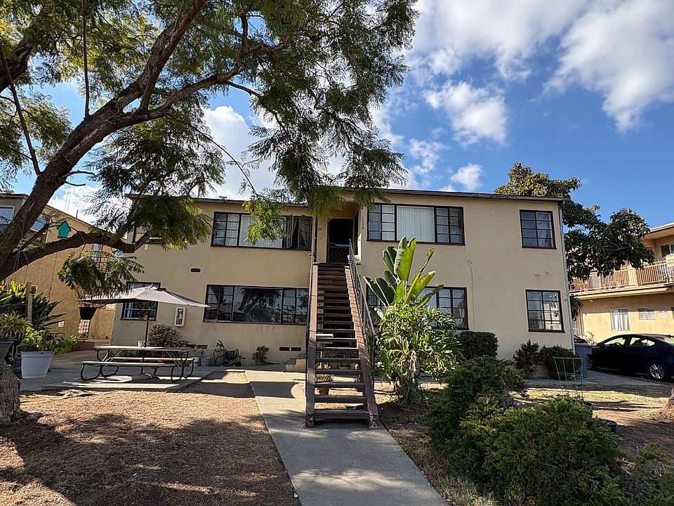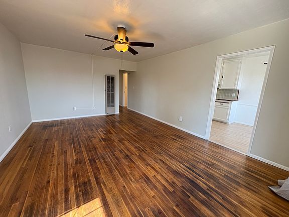 Beautifully refurbished 2 bedroom, 1 bath apartment unit in a charming building. 3030 is located on lower right corner of the building. Original hardwood floors have been restored in the main living area and bedrooms. The bright sunlit kitchen offers original cabinetry, gas range and oven, new refrigerator, all new flooring and metal curtain rods. There is moderate space for a small kitchen table and chairs. Off the kitchen is a walk-in laundry room with a new water heater, new washer and gas dryer hookups, and a generous built in shelving unit for pantry goods and storage. Back door entry to the apartment is accessible through the laundry room. The bathroom has been completely remodeled with all new features. The shower has built-in wall shelves providing generous storage space, along with an accessory ledge at the top. Built in cabinets are located in the hallway. The two bedrooms are bright and sunny with crank style windows and a nice breeze most of the year. The building is located 2-3 blocks from the downtown city shopping area and Lemon Grove metro station. It's a 3 minute walk to Treganza Heritage Park where you can find the Lemon Grove Farmers Market every Thursday afternoon, as well as other social activities throughout the year. The street in front of the apartment building has recently been redeveloped with a walking/running path that will eventually connect to the main shopping street. One year lease. Owner pays for water, trash, and provides landscape maintenance. Smoking is allowed. Cats are permitted, two maximum, $100 pet deposit per cat. Off street parking, or tenant may park behind building.