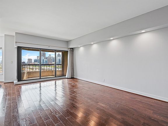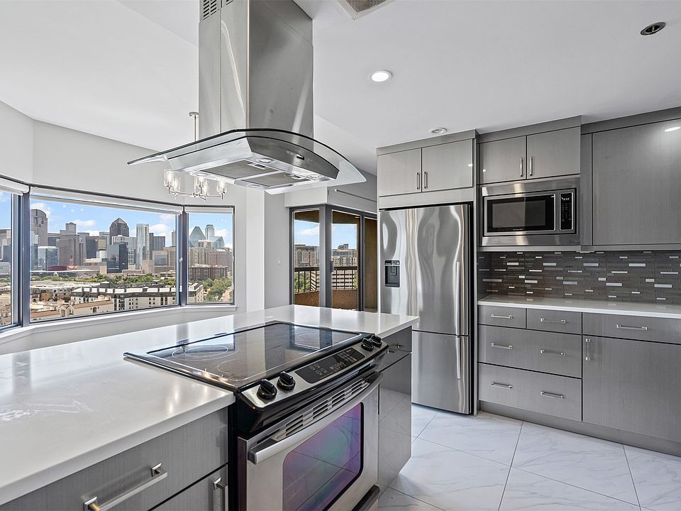 Welcome to high-rise living at its finest in this beautifully updated 17th-floor condominium at 3030 McKinney Avenue. Perfectly positioned in the heart of Uptown, this residence offers sweeping, unobstructed views of the iconic downtown Dallas skyline from multiple vantage points throughout the home. Step inside to an open-concept layout featuring rich hardwood flooring and a neutral color palette that complements the abundance of natural light. The living and dining areas are highlighted by oversized picture windows, thoughtfully designed to frame the cityscape and create a bright, inviting atmosphere. A private balcony extends your living space outdoors, providing the perfect setting for morning coffee or evening relaxation with a view. The modern kitchen is equipped with sleek, high-gloss cabinetry, premium stainless steel appliances, quartz countertops, and a contemporary glass tile backsplash. A spacious center island with a built-in cooktop and designer vent hood offers both functionality and style. Additional features include mirrored accent walls that enhance the sense of space, designer lighting fixtures, and ample storage throughout. The primary suite offers generous closet space and continued skyline views, while both bathrooms are finished with modern fixtures and elegant details. Residents of 3030 McKinney enjoy access to premier building amenities and a prime location steps from Dallas’ finest dining, shopping, and entertainment. This is a rare opportunity to own a sophisticated, move-in-ready home with unparalleled views in one of the city’s most desirable addresses.