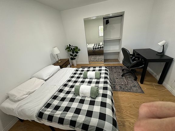 CoLiving house of 4bedrooms and 2 bathrooms, kitchen and dining area 1 fully furnished bedroom with large closet space Month to mont rental available New LED lights, freshly painted, remodeled kitchen Comes furnished like in picture Small pet allowed Dishwasher, 2 Refrigerators, stove, oven, hud Washer and dryer available in building 1 person per room For Move in: 800$ rent+utilities 500$ deposit Available for month to month rental