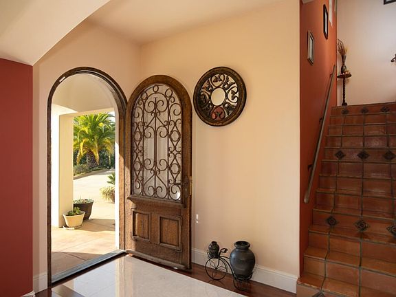 Marvel in the spectacular 360-degree ocean and vineyard views from this custom Mediterranean 4,439 square foot estate on 10+ wooded acres, perched above the Nicholson Vineyards. Designed by architect Wayne Miller, the home features a grand open living space with high ceilings, wood and marble flooring and an over-sized imported marble fireplace. High end custom craftsmanship throughout, generously sized bedrooms (and everything). No expense has been spared! Entertaining is a breeze from the large, remodeled chef's kitchen with high end appliances. 4 generously sized bedrooms, 2 bedrooms downstairs and 2 upstairs, all with en-suite bathrooms. High end closet organization, new home office space, brand new garage cabinetry and flooring. The layout of this house makes this the perfect home for guests and extended family to visit. Workout in the swim spa, enjoy a movie in the home theater, or work from home with sunshine and views from all windows. Acres of hiking trails/treehouse. Take in the views over the vineyards, you will imagine you are in Tuscany. Private, gated and quiet. Enjoy the blooming waterlilies, the established orchard and the thriving bougainvillea. House has a custom lift chair installed for access to the second floor making it live like a single story house.