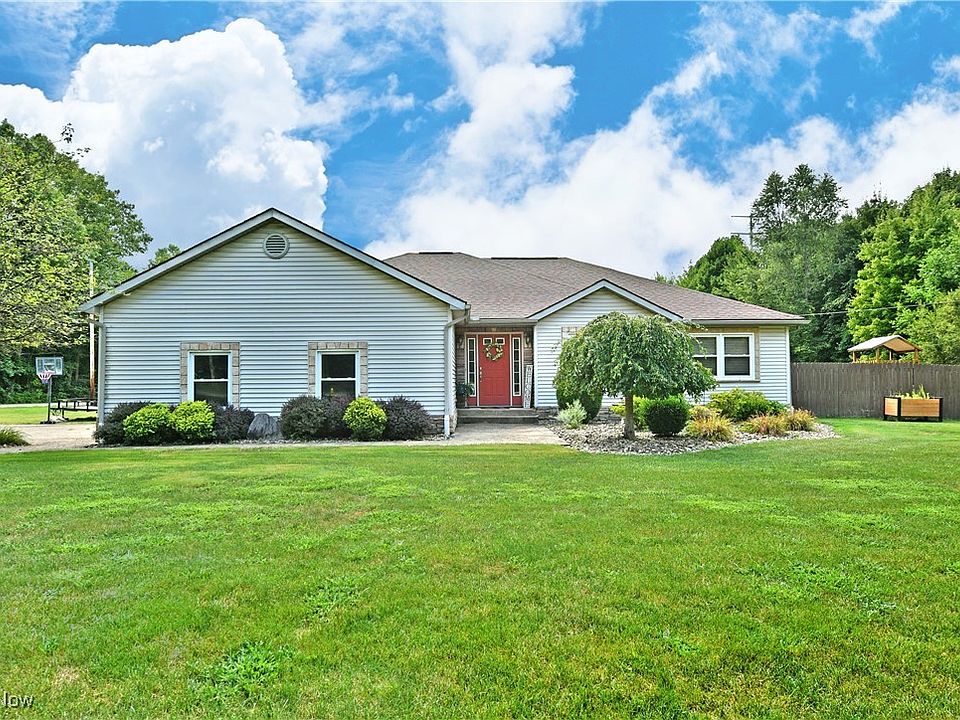 Make sure your shoes are tied tight; you’ll need to run to be first through the door of this breathtaking North Jackson area residence! While situated in Newton Falls, the buyer has the option to enroll in either Jackson-Milton, Lordstown or Newton Falls schools with busing available to all 3!! The expansive property surrounds the sprawling ranch with tree-lined, natural privacy, providing a backyard oasis with plenty of room for expansion. A must-see, composite rear deck provides the perfect place to soak in the views in the warm summer evenings. Side street access finds a two-car attached garage while stone trimmed landscaping follows the wrapping sidewalk, leading around to the formal entryway. Here, a gracious foyer opens with tiled flooring as you take in the open layout that begins with a spacious living room. Warm hardwood flooring contrasts the soothing white and gray colors for a clean aesthetic. Past the accent wall, tiled flooring creates a natural divide into the impressively sized kitchen and combined dining areas. Stone-look countertops join an array of wood cabinetry and stainless-steel appliances. Sat adjacently from the living room, an illustrious formal dining area easily doubles for a sunroom with its window-lined walls. Down the main hall, the must-see master suite follows suite with its own tall windows and private access to the rear deck. A full private bath completes the package with its large vanity. Two additional bedrooms are found on the main floor, each with hard wood flooring and stone window sills. A second full bath joins them at mid hall. Laundry and storage are found at the basement level along with rec space and a finished bonus room. Roof 2014, electric heat-pump 2014, windows and patio door w/ 25 yr transferrable warranty 2019, sump pump w/ new lines & battery backup. Call today for your private showing!