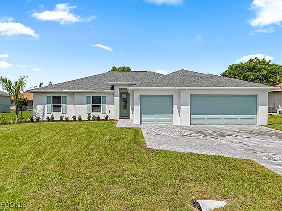 NEW FENCE JUST INSTALLED! SPACIOUS POOL HOME WITH DUAL PRIMARY SUITES! City water and sewer with ALL ASSESSMENTS PAID! Welcome to the Paradise Cove Plan—a stunning, expansive retreat designed for comfort and elegance! This huge 4-bedroom, 3-bath home boasts two luxurious primary suites, making it perfect for multi-generational living or accommodating guests in style. Step inside to discover an open-concept great room with soaring ceilings seamlessly blending indoor and outdoor living. The heart of the home is the gourmet kitchen, featuring soft-close, all-wood cabinetry, quartz countertops, stainless steel appliances, and an oversized walk-in pantry—a dream for any chef! The first primary suite is a private oasis, spacious enough for a king-size bed and a cozy seating area. Enjoy direct access to the lanai and pool, plus a spa-inspired ensuite with a freestanding soaking tub and separate shower. The second primary suite is equally impressive, offering a full bath that also serves as a convenient pool bath, along with a generous walk-in closet. Outside, relax on the lanai or take a dip in the heated pool, perfect for year-round enjoyment. Built by a trusted local builder, this home offers incredible value in Cape Coral with impact windows for added security and lower insurance costs, no flood zone offering peace of mind and savings, and a 10-year structural warranty for long-term confidence. This is The Paradise Cove Plan.