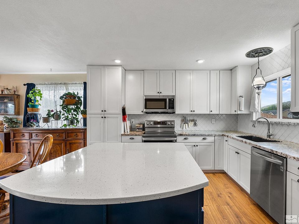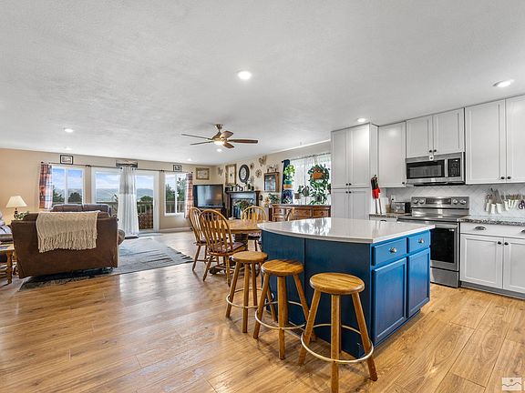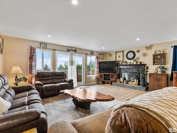 Welcome to this large 5 beautiful home! Step in and be captivated by the stunning kitchen, the great room, and the views! The kitchen features a new stove, microwave and a spacious island with ample storage. The living room is complemented by a river rock framed fireplace and an abundance of natural light. Step out from the living room onto the expansive deck, perfectly designed for entertaining while watching fireworks and taking in the views of Mount Rose and the Nugget!, The main level has 3 bedrooms and 2 full bathrooms. Descend to the walk out finished basement where you will find a spacious family room with 2 additional bedrooms, a full bathroom and 2 large storage rooms. If you are looking for a multi generational home, this is it! The original wood burning fireplace, yes there are 2, provides a cozy inviting atmosphere during those chilly winter evenings. There is room to make a kitchenette and have a great space for guests or VRBO rentals! Step outside into the backyard oasis, where a covered patio invites you to unwind and savor the fresh air. The expansive grass provides the perfect backdrop for outdoor activities, whether it's a game of catch or a leisurely picnic. The solar panels are 3 years old and providing energy savings while reducing the homes carbon footprint. Washoe county shows this as a 3 bedroom 3 bath home, there are 2 additional bedrooms in the finished walkout basement! *Curtains in primary bedroom on main floor do not stay. Ring and camera system do not stay with property, fridge in garage does not stay Please be aware seller has cameras and ring system that transmit audio and video directly to the seller. * Please allow 2 hours notice for showings. This sale is contingent on seller finding an acceptable replacement property.