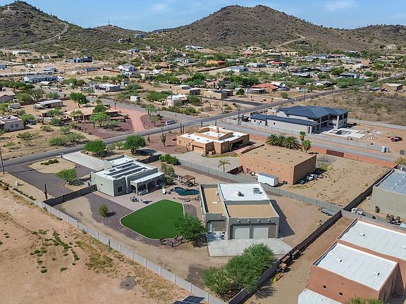 Stunning remodeled luxury estate situated on a full acre in Desert Hills, offering privacy, versatility, and proximity to major employment centers including the TSMC campus. This impeccably maintained property features a temperature-controlled garage with space for 8+ vehicles and RV storage, ideal for car enthusiasts or multi-use needs. The home is equipped with a private well, a large seller-owned solar array, and dual automatic gates providing secure access to both the guest quarters and RV garage.