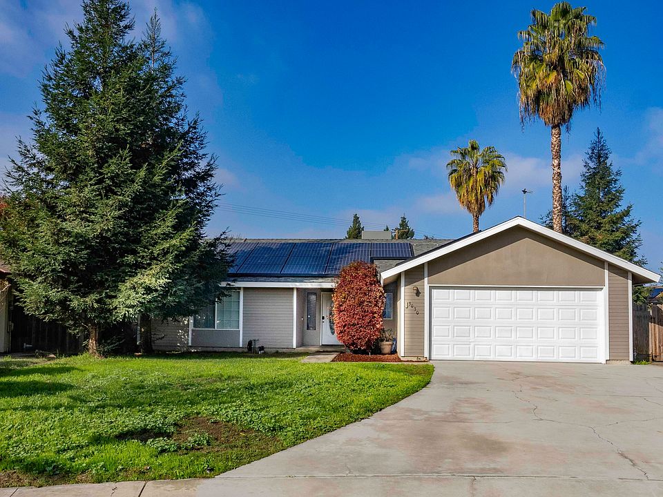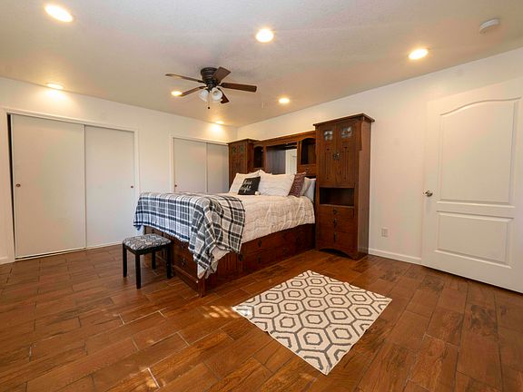 Fabulous single story home featuring 5 bedrooms, OWNED SOLAR, newer A/C, newer water heater, and new French Doors. In the kitchen you will find double ovens, 5 burner cooktop, and a large pantry. Fresh paint, new carpet and a built in China Hutch make this home move in ready. This home, sitting on a 1/3 acre lot, has everything needed to entertain! With a beautiful swimming pool, complete with new filter system, covered patio and enough room to add a Tiny Home!