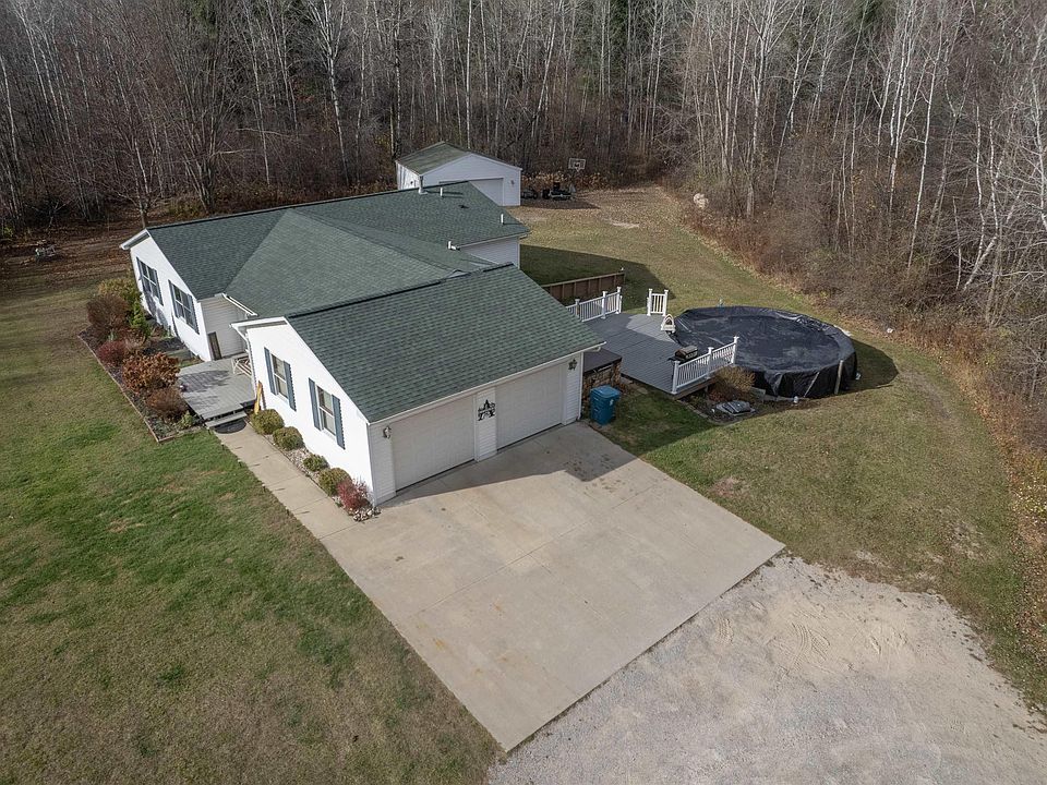 Welcome to 3030 West Prairie Road in Shepherd, Michigan! This beautiful ranch-style home, built in 2000, offers a generous 3,400 square feet of living space. It features six bedrooms and three full bathrooms, making it perfect for a large family or those who love to entertain. Situated on nearly four acres, this property provides a serene and private setting while being conveniently close to Midland, Shepherd, and Mount Pleasant. The main floor includes a spacious master suite with a walk-in closet and en suite bathroom, two additional bedrooms, and a handy main floor laundry room. The open-concept living area is ideal for gatherings, with a formal dining room and a modern kitchen that boasts newer appliances and an island. The fully finished basement adds three more bedrooms, a full bathroom, and an extra living area, perfect for guests or additional family space. Outdoor living is a highlight of this property, with a large deck perfect for summer barbecues, a new above-ground pool, and a hot tub for relaxation. The 24 x 20 ft pole barn provides ample storage for outdoor equipment. Surrounded by beautiful wooded areas, this home offers a peaceful retreat while still being close to local amenities. Don't miss your chance to own this exceptional property. Schedule a viewing today and discover the perfect blend of comfort, style, and outdoor living at 3030 West Prairie Road!