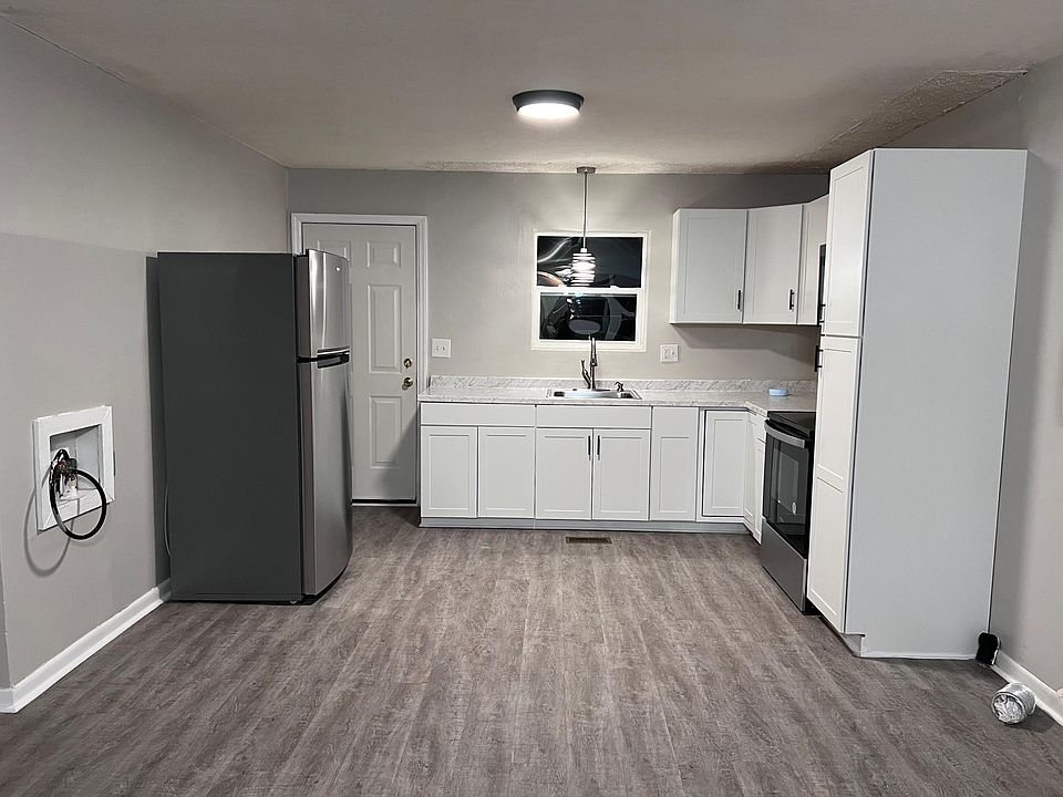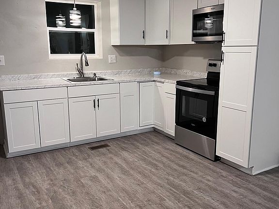 Private yardNew vanityCounter topsCentral air and heatBrand new kitchen cabinetsStainless steel appliances