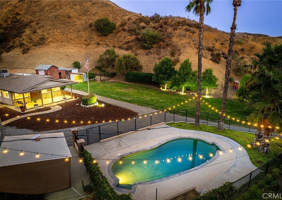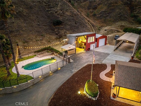Welcome to a rare and exceptional opportunity in the heart of Redlands, California, nestled just off the scenic and highly sought-after Live Oak Canyon Road. This expansive 7.7-acre ranch estate is a private sanctuary surrounded by nature, offering the perfect blend of space, serenity, and versatility. Featuring two fully remodeled single-family homes on one lot, it’s ideal for multigenerational living or creating your own secluded retreat. The main residence is an elegantly updated two-story home spanning approximately 2,197 square feet, with four spacious bedrooms and three and a half bathrooms, including a luxurious downstairs primary suite with a walk-in shower and premium finishes. The open-concept kitchen boasts custom cabinetry, a large center island, and a seamless flow into the living space—perfect for entertaining or daily comfort. Upstairs features a second primary suite with a private bath, two additional bedrooms, and another full bathroom, all enhanced by new flooring, designer lighting, and stylish upgrades. The second home, a beautifully remodeled single-story residence, offers 1,529 square feet with two bedrooms, two bathrooms, a gourmet kitchen with raised counters, Hickory wood flooring, and an indoor laundry area complete with a built-in pet wash station. A bright sunroom off the primary suite adds an additional 268 square feet of flexible living space, ideal for an office, studio, or peaceful retreat. Both homes include dual-pane windows with blackout shades, energy-efficient lighting, ceiling fans, and modern finishes throughout. Outdoor amenities include a fenced Pebble Tec pool, two private water wells, dual 200-amp electric meters, a 50’ x 20’ covered RV port with 50-amp service, multiple RV hookups, and extensive parking. The property also features a powered detached barn, horse-ready stable with cover, large workshop with extended covered space, insulated garage, raised box gardens for organic produce, and areas for chickens or other animals. This is a truly one of a kind ranch estate offering space, privacy, and endless potential perfect for those seeking peaceful canyon living with room to grow.