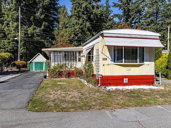 Welcome home to this beautifully updated 2 bed, 1 bath home in the popular 55+ Cedar Creek Estates. This well-managed park offers great neighbours and a strong sense of community. Surrounded by nature, the home sits in one of the park’s best locations—on a quiet no-through street overlooking a beautiful open grassy area. There’s plenty of parking and storage with 2 sheds, a workshop, and a driveway for 2 cars or trucks. Updates include new laminate flooring, fresh paint, a new hot water tank, and more. No Poly-B plumbing. The kitchen fits an eat-in area and opens to the living room. A large, bright den adds extra space. The spacious yard is ideal for gardening or relaxing to the peaceful sounds of nature.