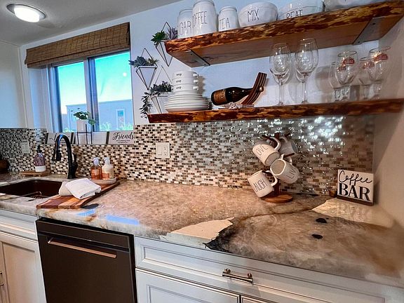 Welcome to one of the Valley's best-kept secrets, Center Court Condos. This fully remodeled poolside home has been thoughtfully designed with custom features throughout, offering a rare blend of modern luxury and timeless charm. Step inside and be captivated by the details: Espresso luxury plank floors throughout—no carpet anywhere! A dramatic floor-to-ceiling stone fireplace, creating a warm, elegant focal point. A luxury home inspired kitchen with Whirlpool Sunset Bronze appliance suite, built-in wine fridge, new cabinetry, and custom live edge hand-carved wood shelving sourced from Phoenix's iconic Porter's Barn Wood. A stunning custom copper sink paired with rare Patagonia granite countertops, infused with Quartz adding a crystal-like glow. The oversized island is illuminated from below the Quartz, creating an enchanting ambiance in the evenings. Additional highlights include new dual-pane windows and doors, a custom built-in Murphy bed in the guest suite (perfect for office or bedroom), and a custom closet. Enjoy two private balconies, one overlooking the serene pool with beautiful Camelback Mountain views. Center Court is more than a community, it's a lifestyle. Behind its private gates, residents enjoy lush landscaping, mature trees, tranquil water features, cobblestone pathways, two pools, pickleball courts, and a huge clubhouse. The neighbors here are friendly and considerate, creating a true sense of home in the heart of Old Town Scottsdale. With the trails, parks, library, dining, galleries, and events just steps away, this is truly one of the most special places to live in Scottsdale. This unit is exceptional. Remodel was for the owners to enjoy, not a cheap flip. Come see for yourself why Center Court is the community everyone wishes they'd discovered sooner. The rest of the photos coming this week.