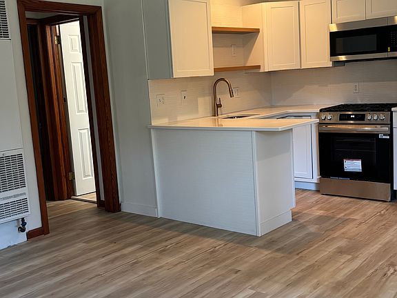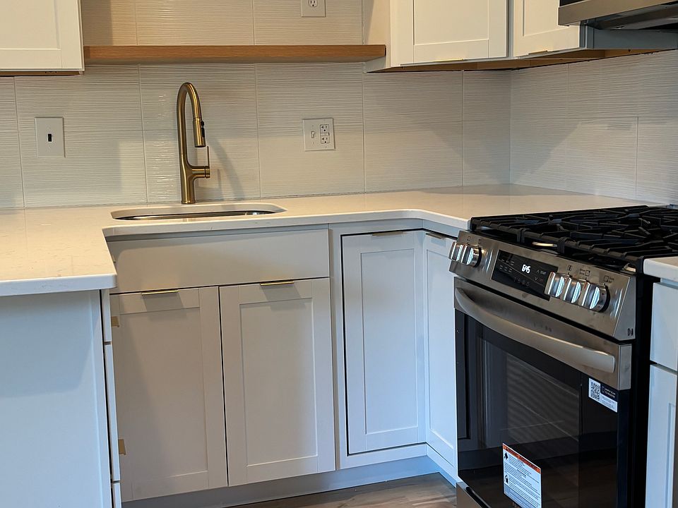 Fully renovated 2-bedroom, 1-bath single-family home located on a quiet, tree-lined street in Norfolk. This home features an open layout with all-new luxury vinyl plank flooring, fresh interior paint, and updated fixtures throughout. The fully remodeled kitchen includes white shaker cabinets, quartz countertops, gold hardware, open shelving, stainless steel appliances, gas range, microwave, and a stacked washer/dryer.