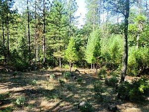 1.16 acres in the pines with a cute clean one bedroom cabin. The cabin has a incomplete kitchen and bath. No well and septic. Beautiful large pines and oaks and no underbrush. Nice out- building.