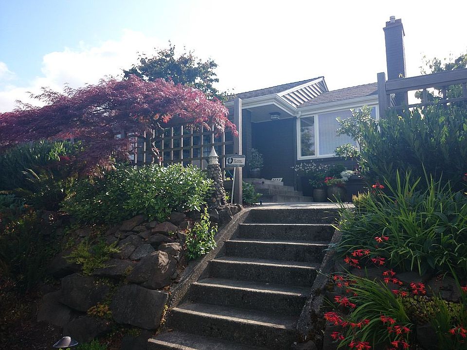 Classic 40's brick home w/ open, updated floor plan for modern living and year-round entertaining. Offering 3 bdrms, 1 3/4 baths (including a steam bath). The gourmet kitchen w/Viking gas range, quartz countertops opens graciously to gorgeous rear deck and patio w/custom landscaping and soothing water feature. Built-in stereo throughout. Major systems updated. Refinished hardwoods, elegant neutral colors and modern amenities make this home move-in ready. Close to schools and bus lines for quick commutes.