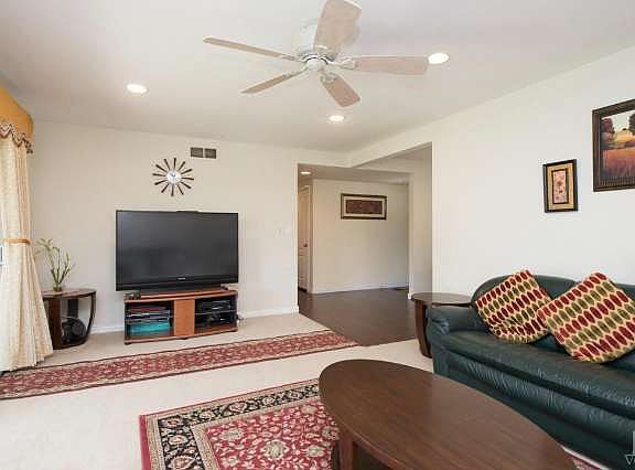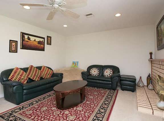 Welcome to this Beautiful Single Story Grammer School Home with Updates Throughout. Located on a Spacious 9,975 Sq. ft lot with Possible RV Access and Plenty of Room for Toys and a Pool and mountain views. Newer Vinyl Fencing, Large Covered Patio with spot lighting, a garden, and a Nice Sized Dog Run. Dual Pane Windows, Recessed Lighting, Smooth Ceilings, Ceiling Fans throughout, and Six Panel Doors Throughout. Rich Wood like Floors and Carpet. Updated Bathrooms with Mosaic Stone Tile in Showers, Stone Tile Floors, Newer Vanities and Fixtures. Lovely Curb Appeal with Custom Stamped Driveway, Potted Plants, and Landscaping. Large Utility/Laundry Room Attached to Kitchen, Great for Storage, Game Room, or Office. Central A/C and Heat. 2 Car Attached Garage. Standard Sale