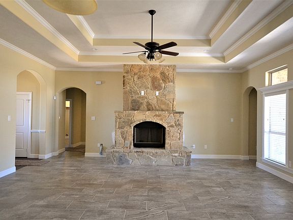 Gorgeous new builder home in the newest phase of Austin's Colony. This great 4 bedroom, 3 bath home offers a fabulous open floor plan. Large family room with 12 foot high ceilings, impressive stone fireplace, pop-up ceilings and decorative arches. Beautiful kitchen with island and custom cabinets, great stainless steel appliance package, gas cooking and pantry. Huge master suite with separate shower and walk-in closet. Three additional bedrooms. Tankless water heater and vinyl windows. Great curb appeal. Property also includes covered extended patio where the new owners can enjoy the evening shade. 10 x 12 site built storage building. No neighbors behind.