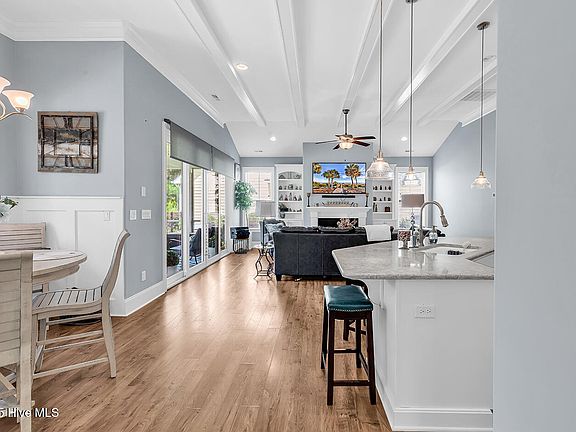 Welcome to exceptional living at 3032 Eno Lane, a custom-built home with four bed, three bath (fourth bedroom currently being used as office) in Brunswick Forest's highly sought after Park Landing community. An elegant foyer with judges panels draws you into a grand open-concept living area, where soaring 14-foot ceilings with exposed beams create a dramatic and inviting atmosphere. This space is perfect for entertaining, with built-in shelving and a gas fireplace, and flows seamlessly into a chef-inspired kitchen. Prepare gourmet meals with ease, surrounded by beautiful Quartz countertops and a spacious counter-height island. Tons of natural light enters through the abundant 6' windows throughout and the double sliding doors. Enjoy outdoor living on the generous screened-in porch, surrounded by custom plantings and crepe myrtles, with low-maintenance Hardie Plank siding and HOA-provided lawn care for stress-free enjoyment. PLEASE Note: Only a portion of the yard is fenced in but can be extended to property lines should you choose. This home is just a short trip from Brunswick Forest's world-class amenities, including pools, tennis, pickleball, walking/biking trails, with the private Cape Fear Golf Course surrounding the community. Just minutes to local shops and Brunswick County beaches. Don't miss out, call for a showing today!