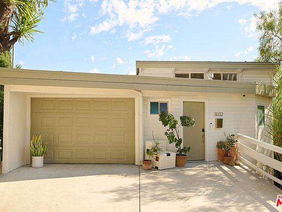 Perched in the foothills of Mount Washington, this striking 2 bedroom, 2 bathroom mid-century modern hillside home offers high design, city views, and a dreamy, perfectly landscaped yard, a true tranquil refuge. The home offers a newly designed and renovated kitchen and bathrooms, featuring chic matte tile, Eny Lee Parker light fixtures, and Phylrich showerhead, faucet, and fixtures. The expertly curated, expansive backyard offers a series of intimate vignettes for relaxation and entertaining, including ample seating, an outdoor dining area, a dipping tub under a canopy of mature eucalyptus trees, olive trees, and an abundance of fruit trees. The main level opens to an airy, open-concept layout defined by vaulted wood-beamed ceilings, clerestory windows, and a dramatic wall of glass. The freshly reimagined kitchen with its custom cabinetry, tile countertops, and designer lighting anchors the living space and provides a dining area flanked by floor-to-ceiling windows. An upper-level patio extends off the kitchen, allowing a serene space to soak in the views with morning coffee. A fully renovated main floor bathroom features refined tilework and sleek fixtures, completing a level that feels both warm and sophisticated. The lower level features two spacious bedrooms, each with ample closet space, and a charming outdoor patio located off the primary bedroom. The shared bathroom has generous proportions, modern finishes, including a Kelly Wearstler light fixture, stone countertop, and Kohler hardware. Step outside into a garden that feels like its own hidden world, a lush, layered landscape filled with mature fruit trees, towering eucalyptus and acacia, and meandering passion fruit and star jasmine vines that drape with effortless beauty. Multiple seating areas are tucked throughout, inviting quiet mornings with coffee or long afternoons beneath the trees. A flagstone pathway winds through the designer-curated California and Australian native greenery, leading to a 10-foot filtered cowboy tub set perfectly for stargazing nights, while expansive decks and shaded nooks offer space to dine, gather, or simply breathe it all in. It's a rare and romantic outdoor sanctuary alive with texture, scent, and soul. This Mt. Washington residence offers an elevated lifestyle in one of Northeast LA's most sought-after enclaves. Enjoy easy access to the best of the vibrant Eastside culinary scene, including Barra Santos, Wife & Somm, Dunsmor, Little Ripper, and The Grant. Begin the day with coffee from Loquat before exploring nearby Moon Canyon Park or the trails of Elyria Canyon. A home of striking form and function, it embodies the ideal fusion of modern design, California hillside living, and outdoor splendor.