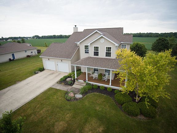 Wrap around porch. Pergo handscraped wood flooring throughout most of 1st floor. 2 story Foyer, flex use Living Rm./Den, formal Dining Rm. Lg island Kitchen w/ new stainless steel appliances & granite, open to Eating Area, w/ door to deck & Great Rm, w/ gas fireplace, flanked by built-in bookcases. 2 car Garage, with 12 x 4 bump out for workshop/storage area. 4 generous upper level bedrooms, including Owner's Ste w/ private Bath & walk-in closet. Partially finished full basement w/ Rec Rm area & storage space, lighting & epoxy floor finish. .66 acre property w/ open & fenced yard areas, perfect for kids/pets play area. No other houses behind. Deck w/ view of field & wooded area.UPDATES: 2018: stainless steel range, hood and refrigerator, master bath sink faucet, 2016: sump pump, 2013: Whirlpool energy smart 80 gal. hot water tank (w/ 11 yr. warranty), 2011: Owens Corning dimensional shingle roof w/ lifetime limited warranty, new transformer and control board (due to lightning strike) in Rheem 90+% eff. furnace, Genie garage door opener, kitchen updates (granite counters, undermount sink and faucet, dishwasher, lighting). Immaculate & move-in ready! Close to Rt.4, 23.