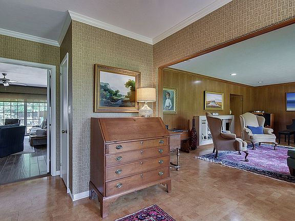 Beautiful 5 bedroom, 5 bath custom Mid-Century Ranch designed for prominent Augusta family, located on very desirable Park Avenue in Augusta, Georgia. Large double lot is landscaped and features private, flat backyard that would be ideal for a swimming pool. Modern kitchen with a large island opens to the den and patio for indoor/outdoor entertaining. A custom mosaic adorns the back splash behind the range. The spacious dining and living room are walnut paneled and feature one of three functioning fireplaces in the home; the others located in the den and study. The HVAC system and duct work were recently replaced with top quality 21 tier heat pumps. The two car garage has extra storage, half bath and a pull down access to attic.