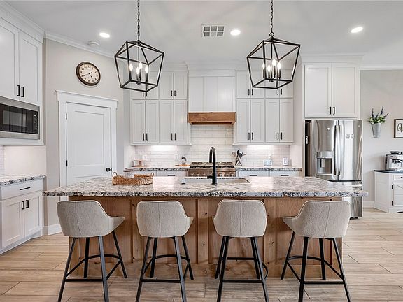 This beautifully designed 3-bedroom, 2-bath custom home features a versatile flex room—perfect for a home office, formal dining, or game room—and a truly unique split floor plan you won’t find anywhere else. Just one year old, this one-story home boasts soaring ceilings, a warm wood-burning brick fireplace, and stunning custom cabinetry throughout. The open-concept layout is perfect for entertaining, offering both style and functionality in every detail. This is your chance to own a one-of-a-kind home that blends thoughtful design with like-new condition—don’t miss it!