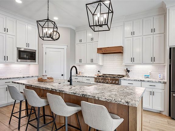 Wood-burning brick fireplaceSplit floor planSoaring ceilingsVersatile flex roomStunning custom cabinetryOpen-concept layout