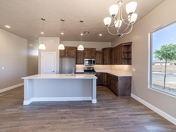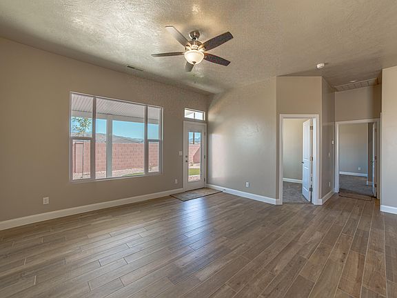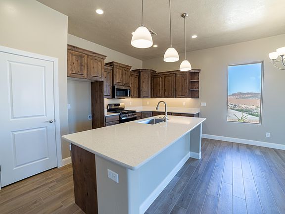 This Brand new home is move-in ready! One of the few single-story townhomes in the area, this home has many high-end features including porcelain wood-grain tile floors, 10' ceilings, fully tiled walk-in shower with a big glass door, stained hardwood cabinets with soft-close hinges and under cabinet lighting, 3 cm thick quartz counter tops throughout, two-toned paint job for extra style, fully-finished garage, covered patio, block wall and fully-landscaped backyard with turf, top-notch plumbing fixtures, and an aesthetically pleasing, energy-efficient stucco and stone exterior with super-durable concrete-tile roof! Plus RV parking! Leaseback program available.