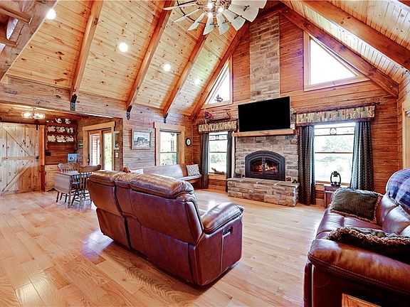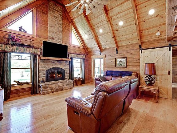 Welcome to this stunning custom-built log cabin, nestled on a peaceful, spacious property that blends rustic elegance with modern convenience. Just five years old, this home showcases exceptional craftsmanship, custom lighting, and vintage-inspired details throughout.