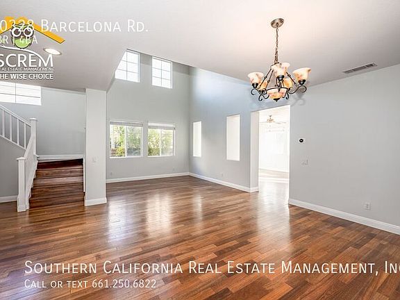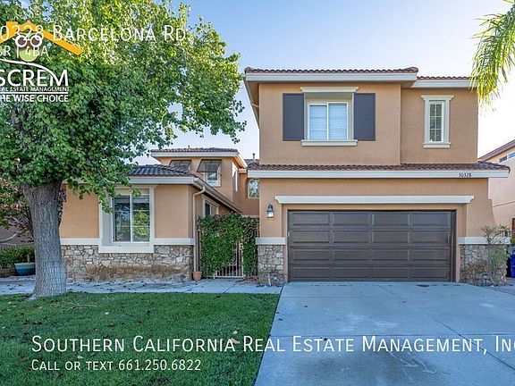 Spacious five-bedroom home plus office in Castaic offers the perfect blend of comfort and style. A gated entry leads to a charming front courtyard and impressive curb appeal. Inside, the elegant living and dining rooms feature cathedral ceilings, abundant natural light, and beautiful hardwood floors. The open kitchen is ideal for entertaining, with tile countertops, a center island, and essential appliances including a gas stovetop, oven, microwave, and dishwasher. Adjacent to the kitchen is a bright dining area with a sliding glass door that opens to a large, private backyard with fruit trees and a wraparound patio, perfect for outdoor gatherings. The inviting family room features a ceiling fan, a fireplace, and more beautiful hardwood flooring, creating a warm, comfortable space to unwind. Downstairs, you'll find a bedroom with an attached full bathroom, as well as a separate office with double doors and another full bath, ideal for working from home or hosting guests. Upstairs is a spacious loft with a ceiling fan. The primary suite is a true retreat, featuring vaulted ceilings, hardwood flooring, mirrored double closets, and serene mountain views. Its attached bathroom includes dual sinks, a vanity, a walk-in shower, and a relaxing Jacuzzi tub. Three additional guest bedrooms, one with a walk-in closet, and a full bathroom with dual sinks. Completing the upstairs is a convenient laundry room with washer and dryer hookups and a generous walk-in linen closet. The home also includes an attached two-car garage. Conveniently located near schools, shopping, restaurants, and the 5 Freeway. *Owner may consider a small pet.