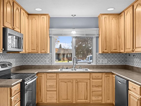 Beautifully updated 4-bedroom, 3-bath home located in the desirable West End neighborhood. The main level features fresh flooring, an updated kitchen with a stylish tile backsplash, abundant cabinetry, and stainless-steel appliances. Enjoy the bright, modern bathrooms and a cozy living room complete with a gas fireplace. The lower level offers a spacious family room with a wood-burning fireplace—perfect for movie or game nights. Step outside to a large fenced backyard with storage shed, underground sprinklers, ideal for entertaining or relaxing outdoors. The heated finished garage is an extra bonus. Recent updates include a newer furnace, hot water heater, and A/C system, ensuring year-round comfort. Move-in ready and conveniently located near shopping, dining, parks and schools.