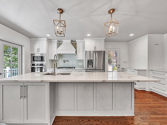 This stunning fully renovated 2-story brick Colonial seamlessly blends timeless charm with modern luxury. Step inside to findrich hardwood floors, custom built-ins, and elegant moldings throughout. The main level boasts a spacious living room with a cozy fireplace that opens to a brand-new back deck, dining room, a stylish half bath, and a chef's dream gourmet kitchen featuring stainless steel appliances, quartz countertops, a massive pantry with a second full-size refrigerator, and a wine cooler. Upstairs, you'll find four generously sized bedrooms and two full baths, including a luxurious primary suite with a walk-in closet featuring built-in shelving and a spa-like en-suite bathroom with a double vanity and a large walk-in tile shower. The walk-out lower level, finished with tile flooring, offers abundant living space with a second fireplace in the family room, a dedicated office, laundry room, and a