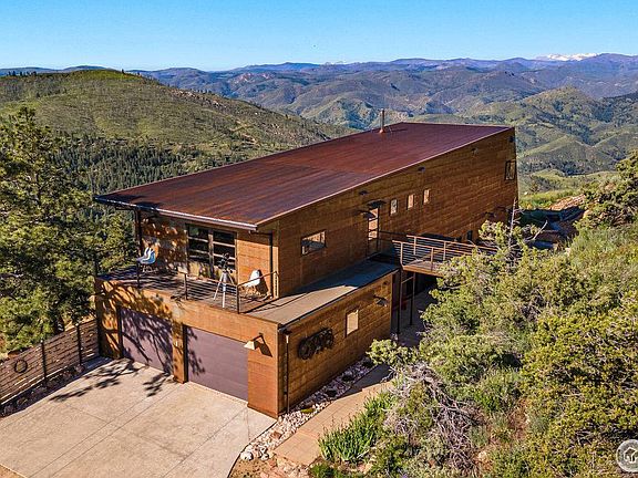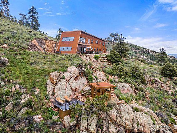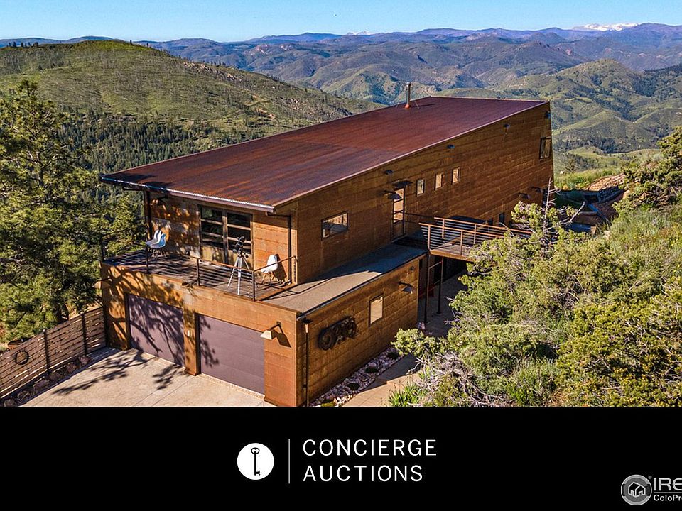 Auction: Bid July 19-25 $1.5M Reserve. Showings Daily 10-2 pm & by appointment @ conciergeauctions.com. Embrace the pinnacle of luxury mountain living at MAAD Peak, where nature's grandeur converges w/ innovative design & resilient materials to create a captivating retreat for those who seek the extraordinary. Nestled majestically on a mountain peak 20 mins from Fort Collins, this remarkable property, perched on 40 acres offers a fresh perspective on mountain living that redefines luxury. With its modern & monolithic architecture, it presents a harmonious fusion of sophistication & simplicity. Embraced by the national forest on two sides, this secluded haven has abundant privacy, a connection to nature, & breathtaking mountain vistas. Its location offers direct access to trails, rivers, reservoirs, national forest & nearby towns & combines the tranquility of a remote mountain retreat with the convenience of urban connectivity. The kitchen & living room are the soul of the home exuding warmth & openness. The expansive professional kitchen delights culinary enthusiasts w/ a 16-ft island & top-of-the-line appliances. Multiple decks & patios invite the spectacular surroundings indoors plus a cold plunge pool and Finnish sauna allow you to unwind amidst nature's embrace. An impressive 1,400 sf primary suite features panoramic views, a work space, wood-burning stove, & cork flooring w/ in-floor radiant heating. A robust structure that adapts to its surroundings, the massive slanted mansard roof w/ panoramic windows bathes the home in sunlight & the aerodynamic form allows winds to glide over it. Enduring, low-maintenance materials will age beautifully when exposed to the mountain elements. 1200 SF artist studio presents versatile possibilities: ADU office or workshop. MAAD Peak is a place where simplicity reigns supreme among the sheer beauty of Colorado's majestic mountains